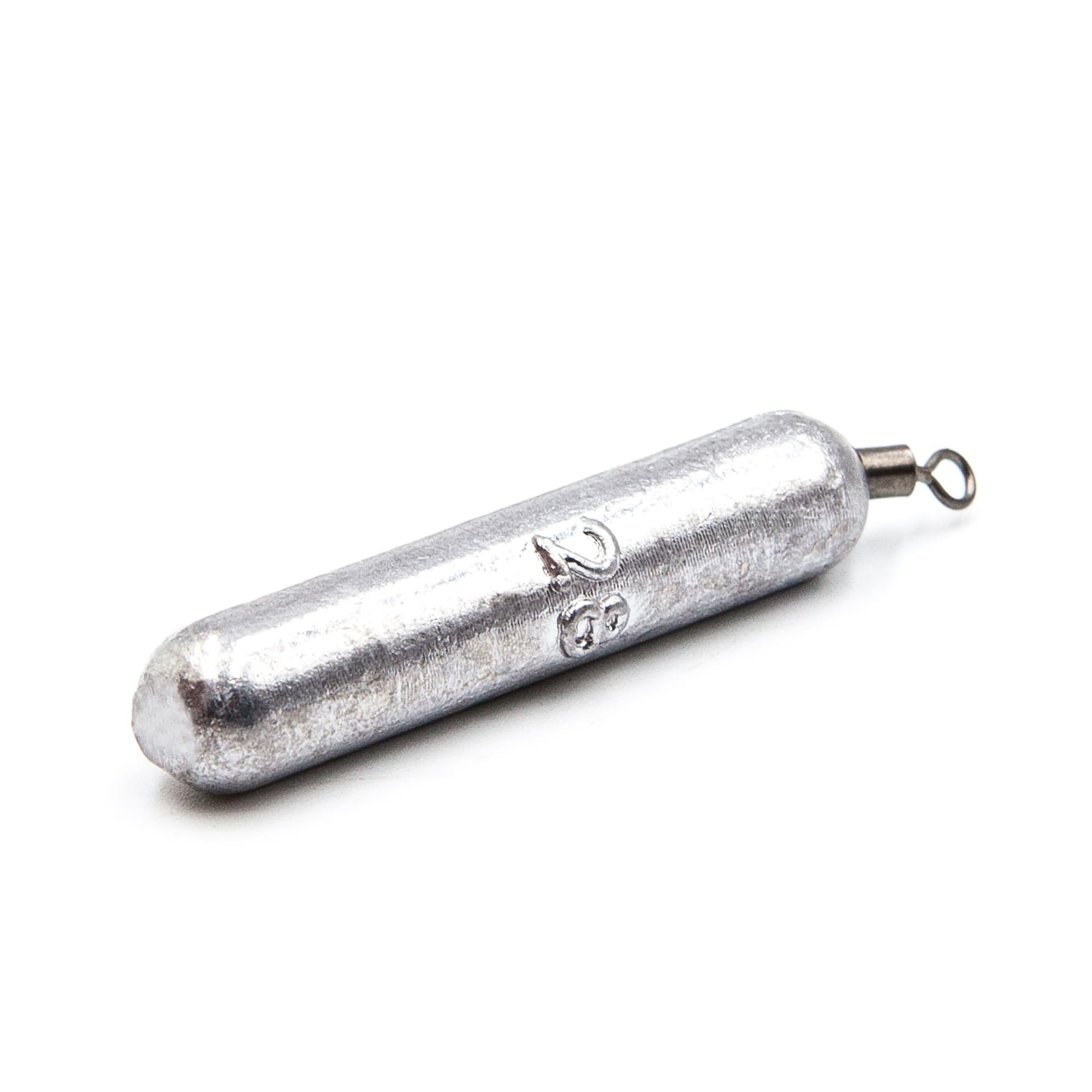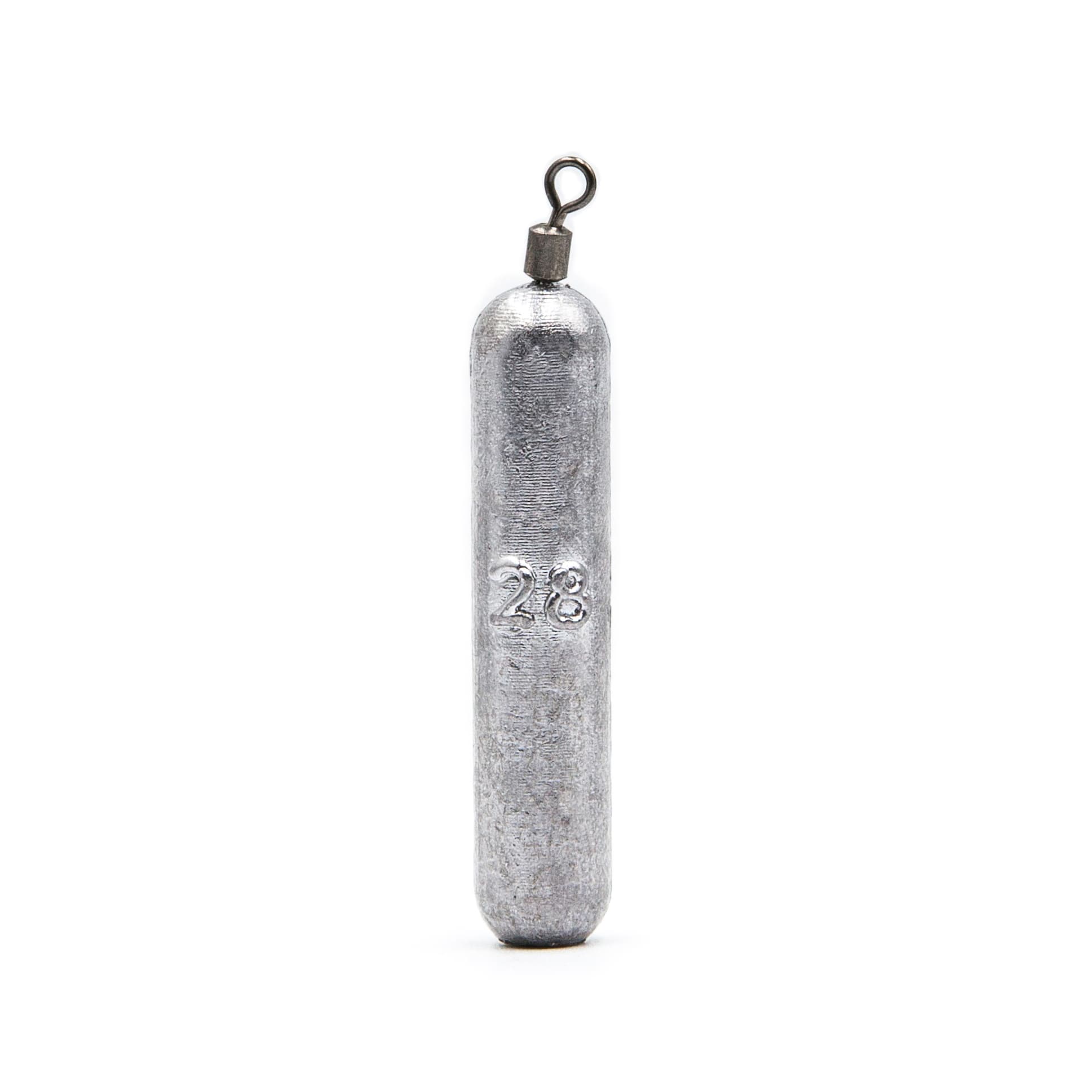 Slim cylinder jig-rig and drop shot weights poured from lead with a built-in swivel for fishing soft plastics cleanly through rocks, grass and wood.